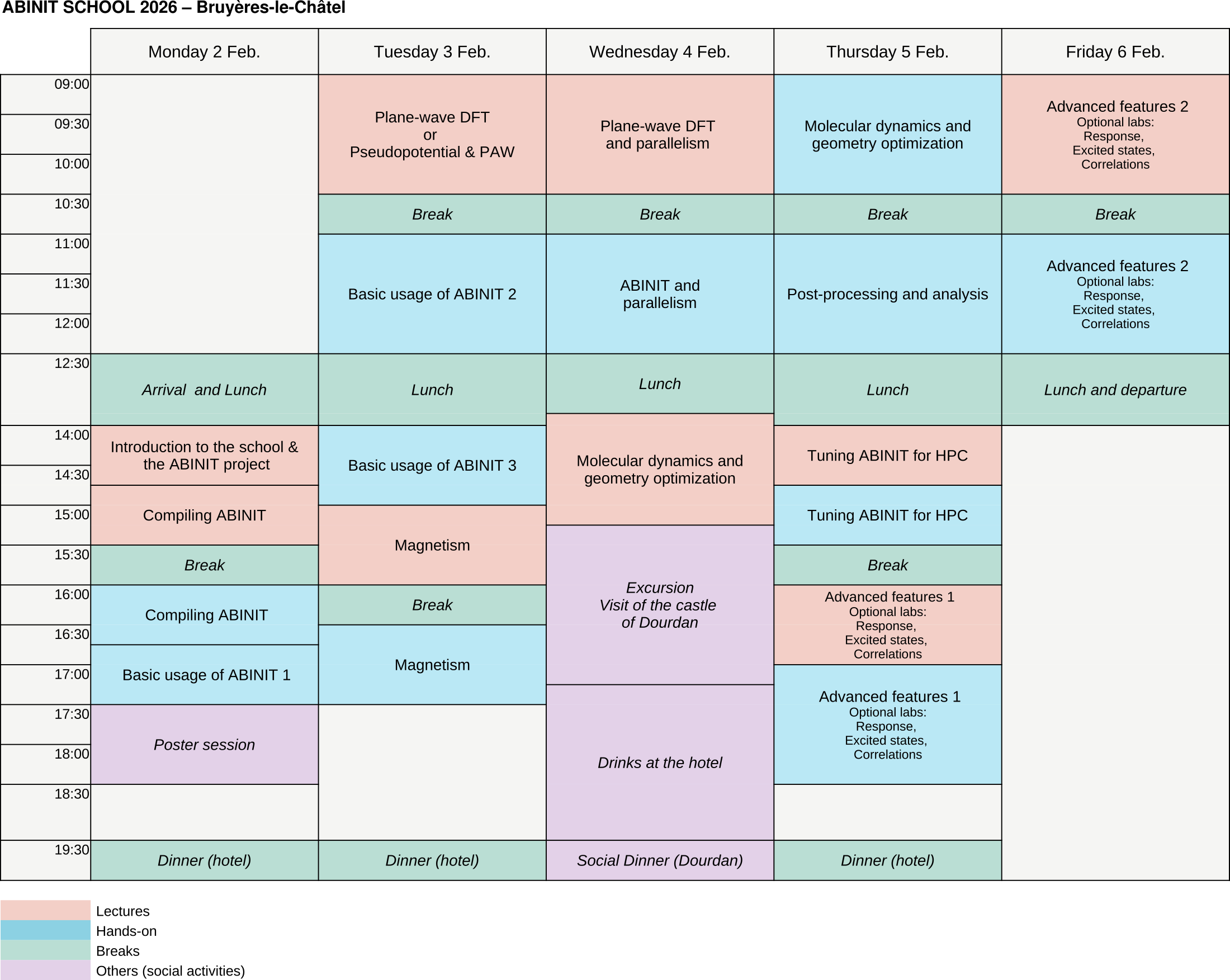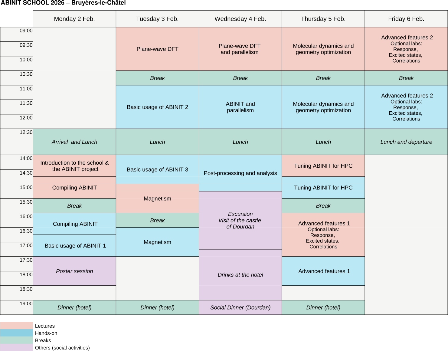 The school is particularly designed for new users of ABINIT: beginner users are welcomed !